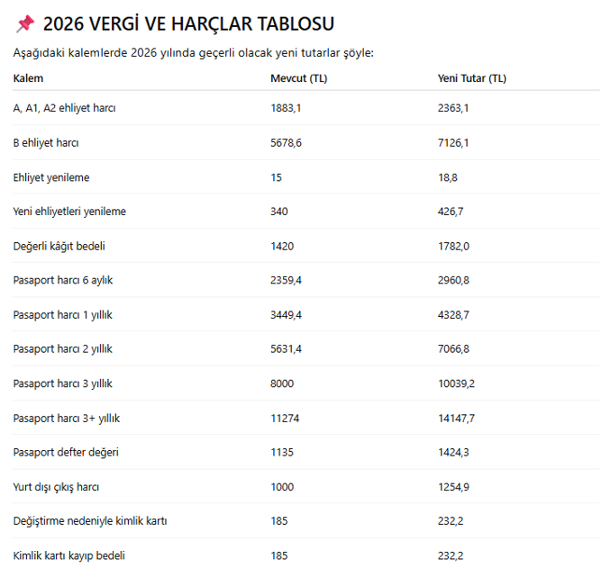 2026'da geçerli olacak yeni ücretler şaşırtıyor! İşte zamlar listesi