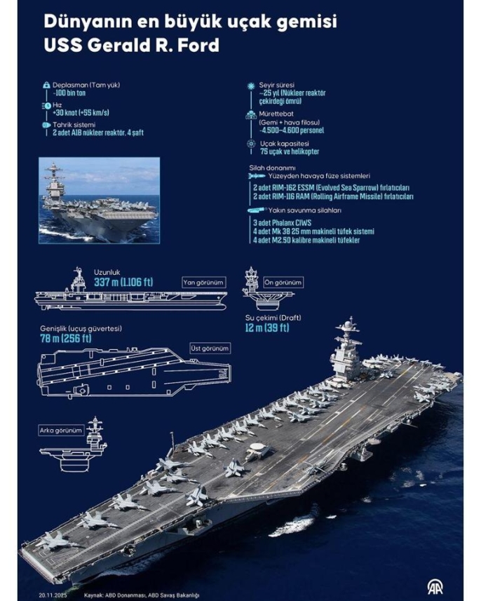 ABD ulusal güvenlik birimlerindeki bu değerlendirmeler devam ederken, Washington'dan İran'a yönelik çarpıcı bir askeri hamle geldi. USS Gerald R. Ford uçak gemisi ve ona eşlik eden savaş gemilerinden oluşan bir görev grubunun Orta Doğu'ya sevk edileceği bildirildi. Halihazırda bölgede bulunan Amerikan askeri varlığına katılacak olan bu gemi grubunun Karayipler'den yeniden konuşlandırılması planlanıyor. Dört ABD'li yetkili, bu uçak gemisi grubunun İran menziline girecek şekilde konumlandırılmasının, bölgedeki gerilimin arttığı bir dönemde Washington'ın askeri kapasitesini güçlendireceğini ifade etti. Bu gelişmeler, Trump yönetiminin İran'ın nükleer programı konusunda müzakereler yürüttüğü bir döneme denk geliyor. İsrail Başbakanı Netanyahu, olası bir anlaşmanın sadece nükleer programı değil, İran'ın balistik füze faaliyetlerini ve bölgedeki vekil güçlere sağladığı finansmanı da kapsaması gerektiğini savunuyor. İranlı yetkililer ise ağır ekonomik yaptırımların hafifletilmesi karşılığında uranyum zenginleştirme faaliyetlerinin bir kısmını sınırlandırmaya açık olduklarını belirtiyor. Ancak taraflar arasında henüz yazılı bir anlaşma bulunmuyor. ABD ile İran'ın, savaşı önleyecek bir uzlaşı sağlamak amacıyla Cenevre'de ikinci tur nükleer görüşmeleri gerçekleştirmesi bekleniyor. ABD Dışişleri Bakanı Marco Rubio, bu konuda 'diplomasiyi tercih ettiklerini' belirtirken, Başkan Trump bu uçak gemisi konuşlandırmasını müzakerelerin başarısız olması ihtimaline karşı alınmış ihtiyati bir tedbir olarak nitelendirdi.