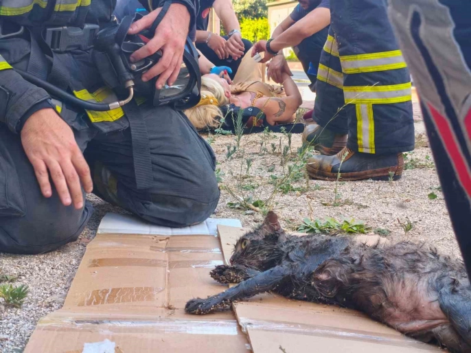 Yangında dumandan etkilenen bir kedi itfaiye ekiplerince alevlerin arasından kurtarıldı. Nefes almakta güçlük çeken kediye itfaiye eri tarafından oksijen maskesi takıldı. Bitkin ve hareketsiz olan kedi, olay yerine çağrılan veteriner hekim tarafından teslim alınarak tedavi altına alındı. Polis ve itfaiye ekipleri yangının çıkış nedenini araştırıyor.