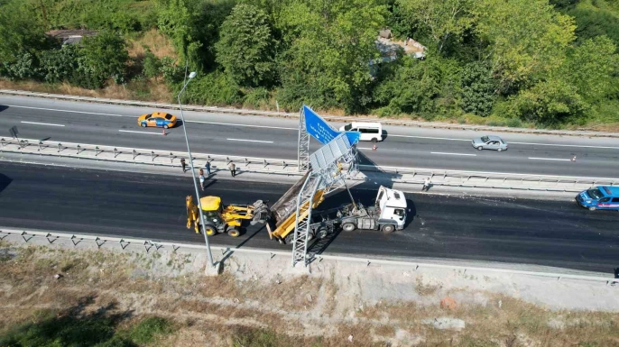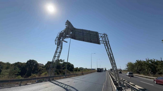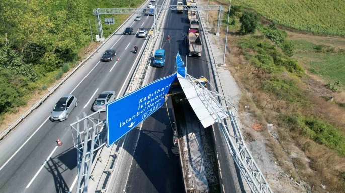 Kapalı yolda ilerleyen kamyon, açık olan damperiyle yol kenarındaki yönlendirme levhasına çarptı. Kazada hem kamyonda hem de levhada hasar oluştu.