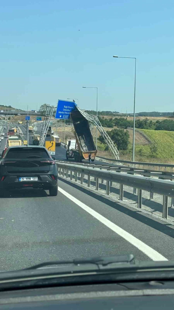 Arnavutköy'de ilginç kaza: Açık unutulan damper yön levhasına çarptı