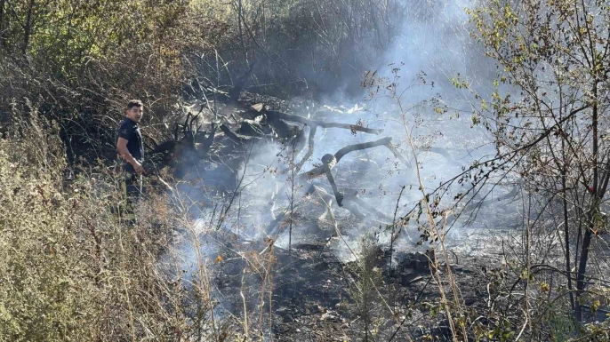 İtfaiyecilerin yangına müdahalesini engellemeye çalışan şüpheli, polis ekiplerince etkisiz hale getirilerek gözaltına alındı. Yangın ise kısa sürede kontrol altına alındı. Çevredeki vatandaşlar, yangını itfaiye erlerine saldıran şahsın çıkardığını iddia etti. Şüphelinin gözaltına alınma anı cep telefonu kamerasına yansıdı, yanan alan da dron kamerasıyla havadan görüntülendi.