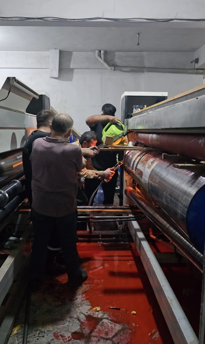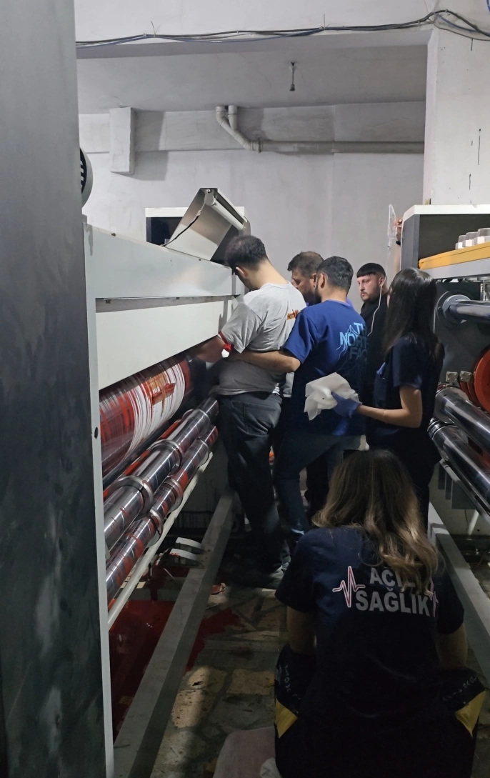 İmalat sırasında işçinin eli baskı makinesine sıkıştı. Makinelerin çalışması durduruldu ve 112 Acil Çağrı Merkezi'ne haber verildi. Olay yerine polis, itfaiye ve acil sağlık ekipleri sevk edildi. İtfaiye ekiplerinin yaklaşık 1,5 saat süren çalışmasının ardından işçi kurtarıldı.