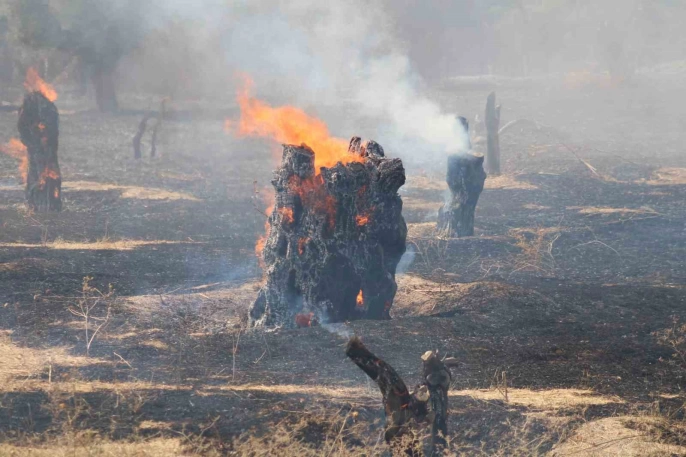 Bölgedeki güçlü rüzgar, alevlerin kısa sürede geniş bir alanı kaplamasına neden oldu. Yangın, yakınlardaki bir hayvan çiftliğini de tehdit etti. Durumu fark eden vatandaşlar, 112 Acil Çağrı Merkezi'ne ihbarda bulundu.