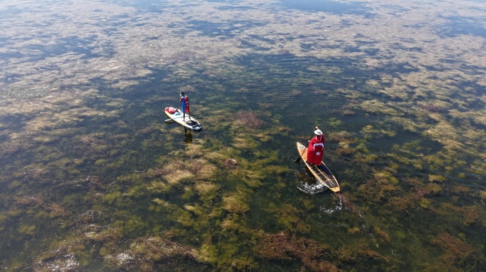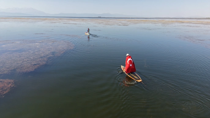 Beyşehir Gölü'nün kuraklığına dikkat çeken 43 kilometrelik SUP parkuru