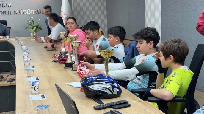 Bisiklet şampiyonları, Gençlik ve Spor İl Müdürü'nü ziyaret etti