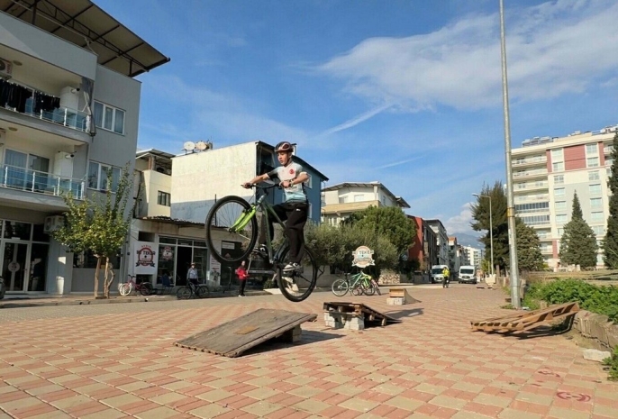 Aydın'da bisiklet parkuru bulunmamasına rağmen, mahalle aralarındaki boş alanlarda antrenman yaparak Türkiye dereceleri elde eden Aydın İki Teker Bisiklet Spor Kulübü sporcuları, antrenörleriyle birlikte Gençlik ve Spor İl Müdürü Serhat Yığmatepe'yi ziyaret etti.
