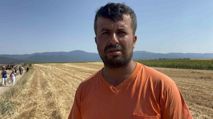 Balya makinesiyle çalışan Hakan Gönültaş, karşı tarlada yükselen dumanları fark ederek, yanında bulunan yangın tüpüyle yangına müdahale etti. Daha sonra çevredeki köylülerden yardım istedi.