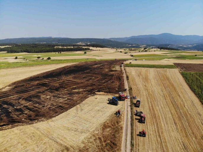 Bolu'nun Çaydurt bölgesindeki Aşağı Çamlı köyü kırsalında çıkan yangına, balya yapan bir çiftçi ilk müdahaleyi yaptı.