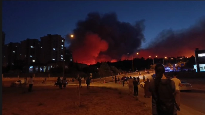 Havanın kararması nedeniyle hava araçlarıyla müdahale sona erdirildi. Ancak, karadan müdahale TOMA'ların desteğiyle devam ediyor.