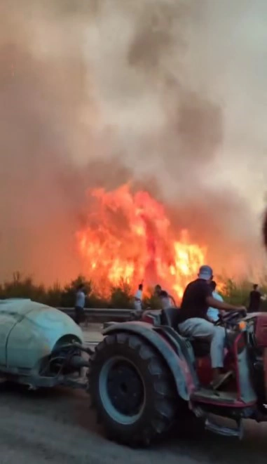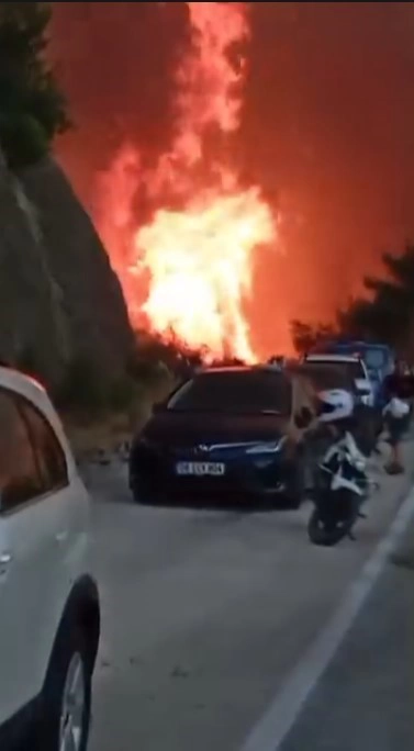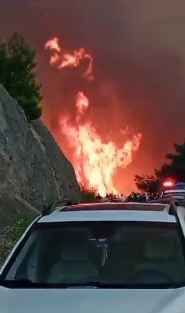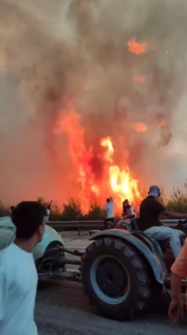 Yangına havadan ve karadan müdahale devam ediyor. Karayolunda ilerleyen alevlerden kaçmaya çalışan vatandaşlar, araçlarını alevlerden son anda kurtardı. Olay yerinde incelemelerde bulunan yetkililer, yangının kontrol altına alınması için çalışmaların sürdüğünü belirtti.