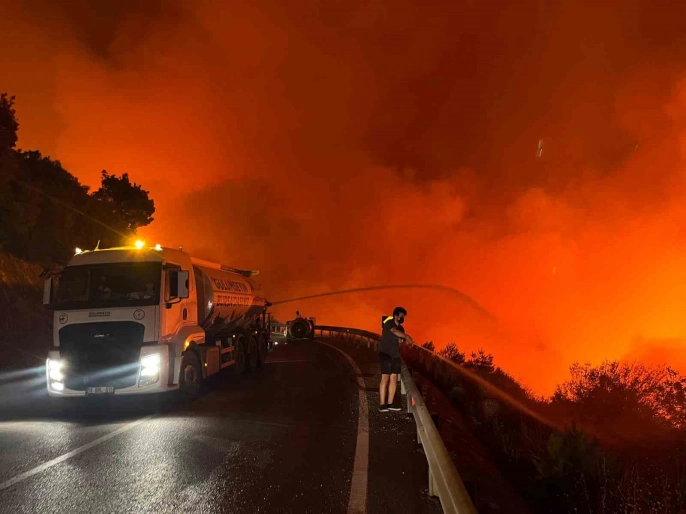 Yangının karayoluna ulaşması üzerine, bölgeye araç girişi ve çıkışı kapatıldı. Alevlerin TOKİ bölgesine doğru hızla ilerlediği gözlemleniyor. Gece karanlığında yangının alevleri şehrin her yerinden görülüyor.