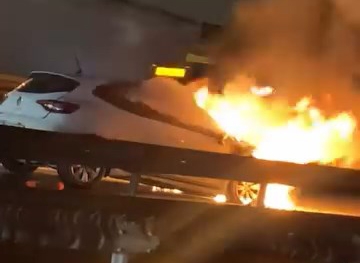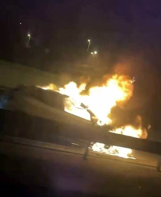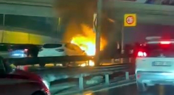 D-100'de otomobil alev aldı: sürücü son anda kurtuldu