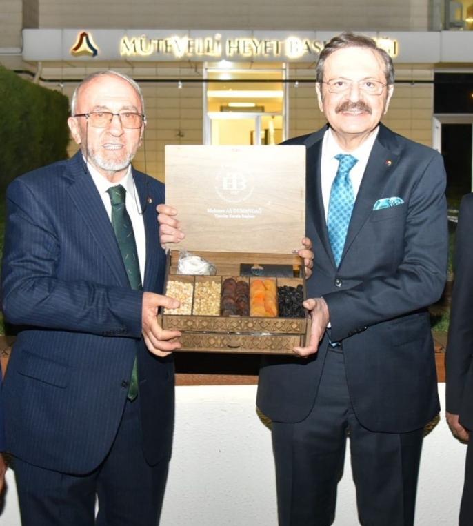 Elazığ Ticaret Borsası Başkanı Mehmet Ali Dumandağ ile Türkiye Odalar ve Borsalar Birliği Başkanı M. Rifat Hisarcıklıoğlu, Elazığ'ın ekonomik ilerlemesini etkileyecek önemli bir toplantı düzenledi. Bu görüşmede, iki lider Elazığ'ın potansiyelini geliştirecek stratejik projeleri detaylı olarak ele aldı.