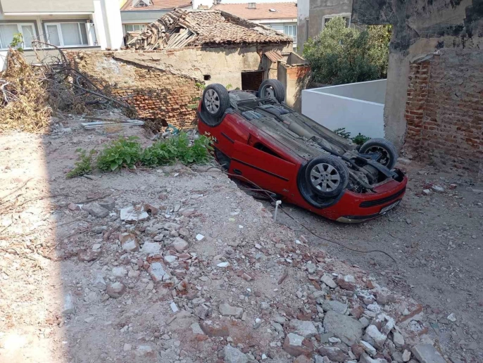 Kontrolünü kaybeden otomobil, yol kenarındaki bir arsaya uçarak takla attı. Araçtaki iki kişi, kazayı kendi imkanlarıyla atlattı ve araçtan çıktı.