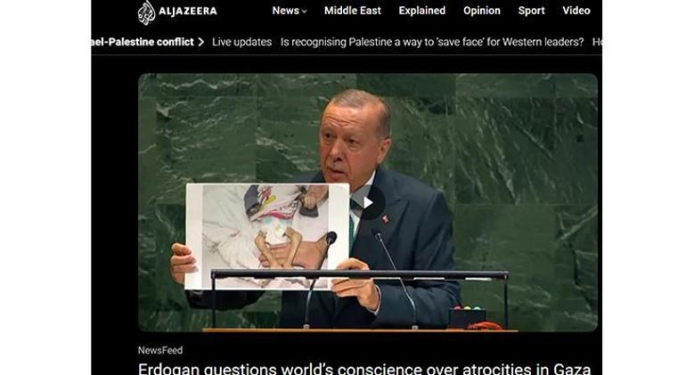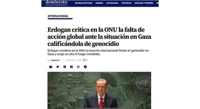 Yunanistan, İsrail, İtalya ve diğer birçok ülkenin önde gelen haber kuruluşları, Erdoğan'ın konuşmasını ve ele aldığı konuları detaylı bir şekilde aktardı. Erdoğan'ın açıklamaları, uluslararası ilişkilerde yeni bir dönemin başlangıcı olarak yorumlandı. Özellikle Gazze'deki insani krize dair açıklamaları ve Filistin devletini tanıyan ülkeleri tebrik etmesi dünya basınında öne çıkan başlıklar oldu.
