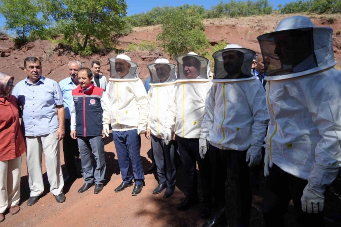 Vali Aydoğdu ve beraberindeki protokol üyeleri, bal hasadının hayırlı olmasını dileyerek üreticilere bol ve bereketli hasatlar diledi. Vali Hamza Aydoğdu, Kültür ve Turizm Bakan Yardımcısı Batuhan Mumcu, Erzincan Belediye Başkanı Bekir Aksun, EBYÜ Rektörü Prof. Dr. Akın Levent, Vali Yardımcısı Hüseyin Aydın, Erzincan Arı Yetiştiricileri Birliği Başkanı Rahmi Özendi ve birim amirleri de hasada katıldı.