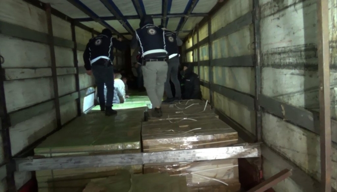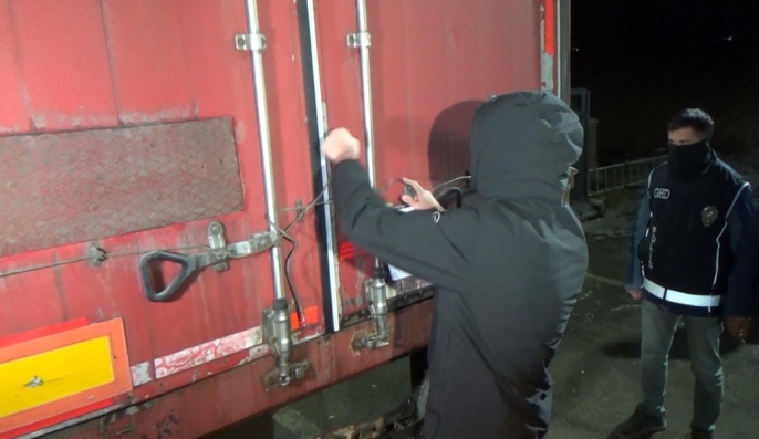 Erzurum'da polis ekipleri tarafından gerçekleştirilen şok uygulamalarda, gümrük mühürlü bir TIR'ın dorsesinde 23 Afganistan uyruklu düzensiz göçmen yakalandı. TIR şoförü gözaltına alındı.