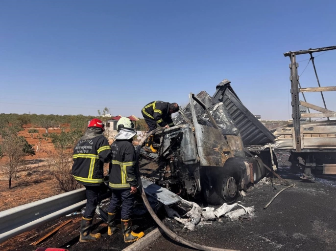 Gaziantep-Nizip otoyolunda korkunç kaza: Tır alev topuna döndü