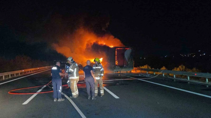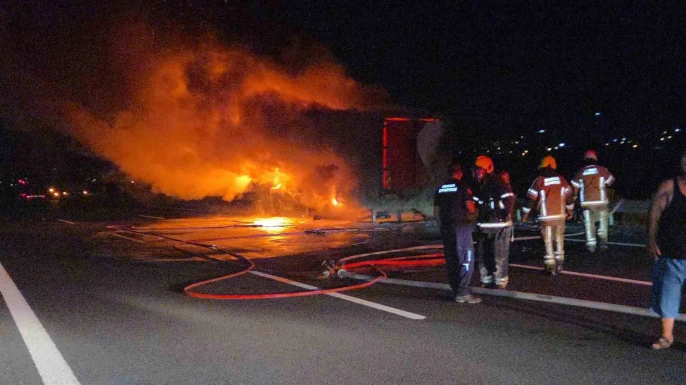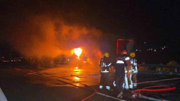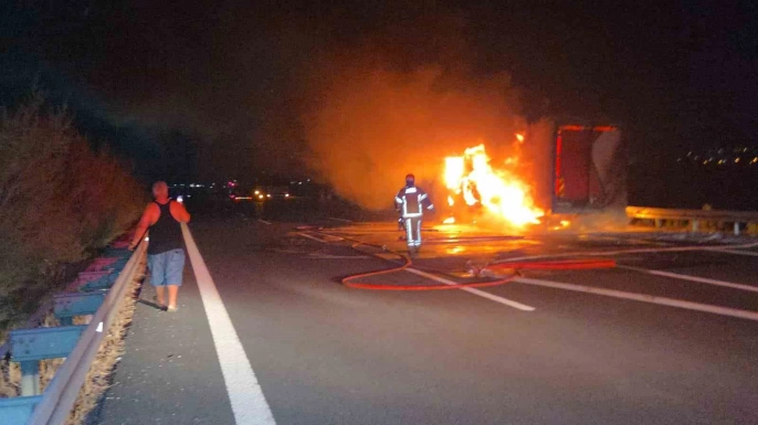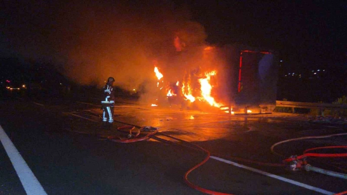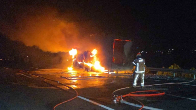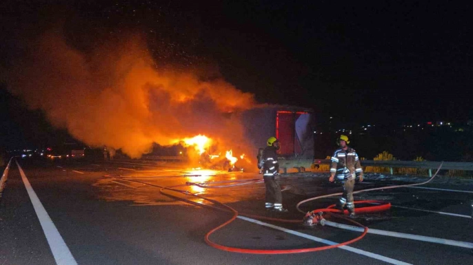 Gebze-Orhangazi-İzmir otoyolunda seyir halinde olan bir kargo kamyonu, Orhangazi çıkışı yakınlarında henüz belirlenemeyen bir nedenle alev aldı. Ramazan Altıntop yönetimindeki kamyon, kısa sürede alev topuna dönüştü. Olay, gece yarısından hemen sonra meydana geldi.