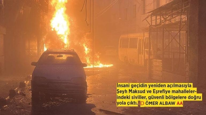 Kentteki sivillerin tahliyesi önceki gün başlamıştı. Dün sabah Halep Valiliği, terör örgütü işgali altındaki Şeyh Maksud ve Eşrefiye mahallelerinde sivillerin çıkışının engellenmesi üzerine, sivilleri güvenli bölgelere ulaştırmak amacıyla iki insani geçidin yeniden açıldığını bildirdi. Tahliye işlemleri saat 10.00 ile 13.00 arasında gerçekleşti. Çatışmaların yaşandığı bölge ve çevresindeki mahallelerden yaklaşık 150 bin kişi tahliye edildi. Evlerinden ayrılan Suriyeliler için Halep'te sekiz, Afrin'de ise dört olmak üzere toplam 12 konaklama merkezi oluşturuldu. Operasyonun başladığı ilk gece Afrin'deki merkeze gelen evlerinden edilmiş sivil sayısı 20 bini aştı.