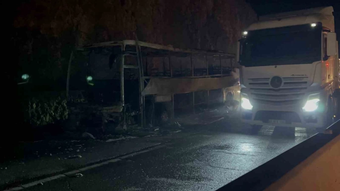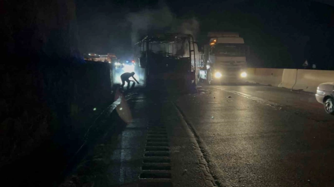 Görüntülerde, otobüsün hızla alev aldığı ve yolcuların panik halinde kaçıştıkları anlar net bir şekilde görülüyor. Yangında can kaybı ya da yaralanma yaşanmadığı öğrenildi. Jandarma soruşturması devam ediyor.