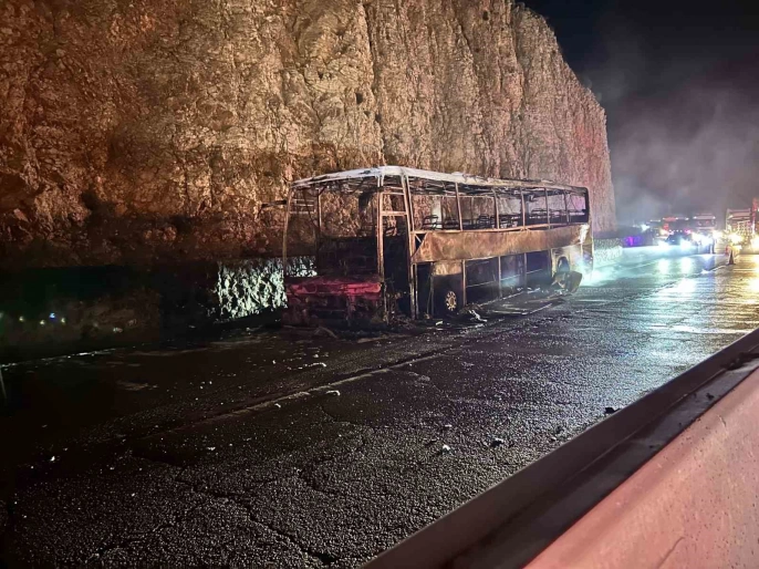 Antakya’dan İstanbul’a giden 31 ADR 94 plakalı Jet Turizm yolcu otobüsü, Hatay'ın Belen ilçesi Kıcı mevkiinde yangına tutuldu. Otobüs içerisinde bulunan 20 yolcu, yangın sırasında korku dolu anlar yaşadı. Yangın kısa sürede tüm otobüsü sardı ve alev topuna döndü.