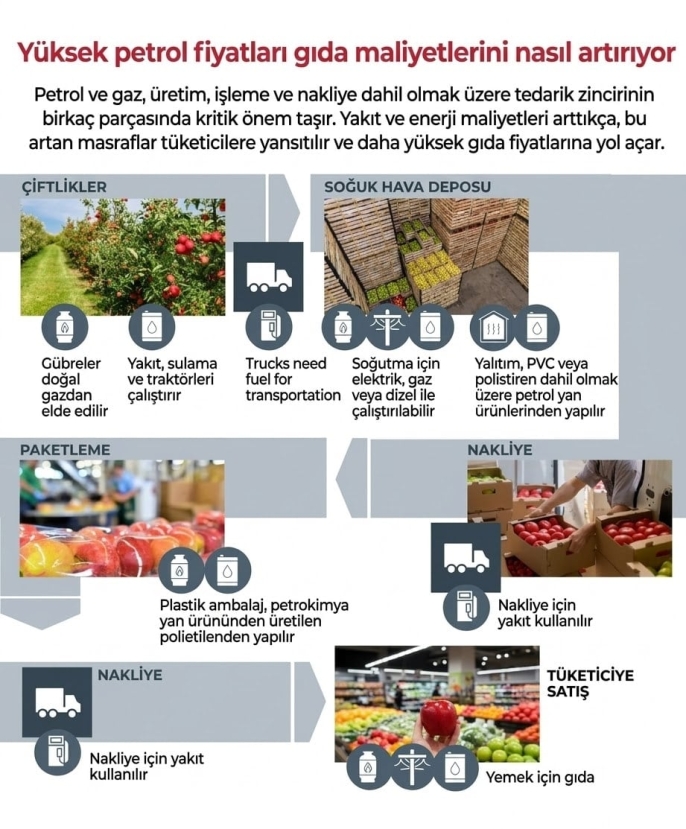 Ekonomistlerin ve gıda analistlerinin tahminlerine göre, bu krizin gıda fiyatlarına yansıması kaçınılmaz. Gübreye en bağımlı ürünler olan pirinç ve buğdayda yüzde 40 ila 50 arasında fiyat artışı bekleniyor. Soya fasulyesi ve mısırda ise yüzde 30-45'lik bir artış öngörülüyor. Bu durum, sadece bu ürünleri değil, aynı zamanda yem maliyetleri üzerinden et ve süt fiyatlarını da artıracak. Yağlı tohumlarda yüzde 25-35, şeker fiyatlarında ise yüzde 20'lik bir sıçrama bekleniyor. Eğer Hürmüz Boğazı yıl ortasına kadar kapalı kalırsa, Dünya Gıda Programı'na göre halihazırda gıda güvensizliği yaşayan 318 milyon kişiye 45 milyon yeni mağdur daha ekleneceği tahmin ediliyor.