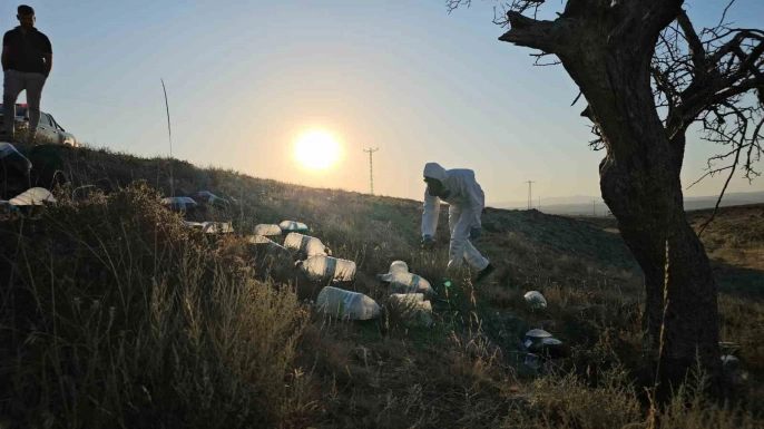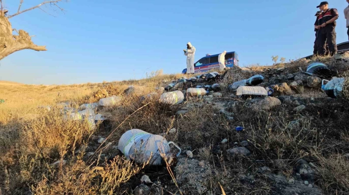 Jandarma ekipleri, çevrede güvenlik önlemleri alırken, özel kıyafetli AFAD ekipleri bidonlardaki sıvıyı inceledi. Yapılan incelemelerin ardından, bidonlardaki sıvının küçükbaş hayvanların memelerini temizlemek için kullanılan bir kimyasal madde olduğu belirlendi.