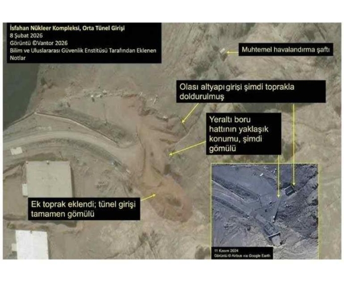 Uydu görüntüleri, İsfahan'daki nükleer tesise ait tünel girişlerinin büyük ölçüde toprakla kapatıldığını gösteriyor. Tesisin orta ve güney kısımlarındaki girişlerin tamamen toprak altında bırakıldığı, kuzeydeki girişte ise ek pasif savunma önlemleri alınarak yine toprakla doldurulduğu belirtiliyor. Girişlerin çevresindeki araç hareketliliğinin olmaması da bu önlemlerin ciddiyetini vurguluyor.