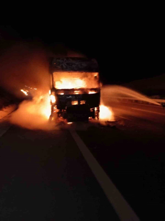 Yangın ihbarı üzerine olay yerine itfaiye, sağlık ve polis ekipleri sevk edildi. İtfaiye ekipleri, tır yangınına müdahale ederken, sıçrayan alevler otoyol kenarındaki otluk alana da sıçradı. Ekipler, hem tırı hem de otluk alandaki yangını söndürdü.