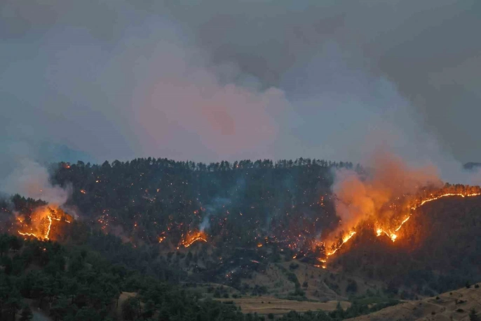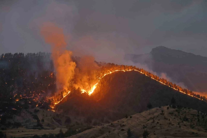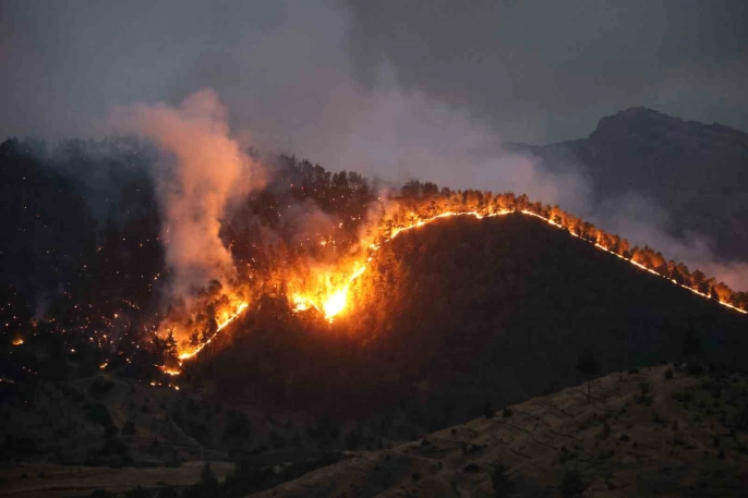 Kahramanmaraş'ın Onikişubat ilçesinde, Çamlıbel ve Çakırdere mevkiinde çıkan orman yangınına müdahale çalışmaları, havanın kararmasına rağmen devam ediyor. Yangının çıkış nedeni henüz belirlenemedi. Çok sayıda Orman Bölge Müdürlüğü ekibi, arasözler, yangın söndürme ekipleri ve iş makineleri yangına müdahale için sevk edildi.
