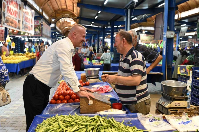 Karacabey Belediye Başkanı Karabatı, pazaryerinde esnafla buluştu