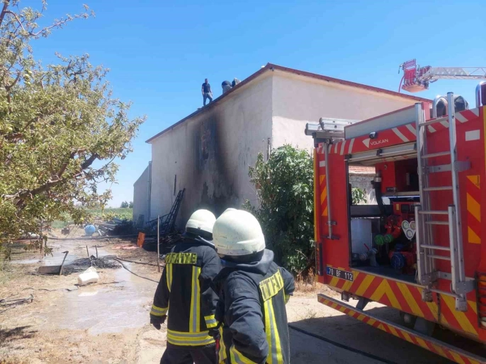 Karaman'da ev yangını: Çatıya sıçrayan alevler söndürüldü