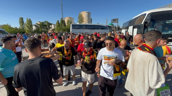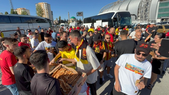 Kayseri'ye deplasmana gelen Göztepe taraftarları, Kayserispor taraftarlarınca yemek ve tatlı ikramıyla karşılandı. İzmir Çamdibi'nden gelen Göztepeli taraftar İsmail Kenanbaşoğlu, Kayserispor taraftarına teşekkür ederek, "Keyifle geldik, güzel karşılandık. İnşallah güzel bir maç olur. Dostluk kazansın" dedi.
