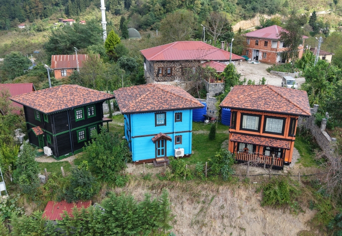 Trabzon'un Araklı ilçesinde, köy kültürünü modern teknolojiyle harmanlayan bir tatil köyü hayata geçirildi. Burada misafirler, zemine monte edilen özel mekanizmalar sayesinde 360 derece dönebilen ahşap evlerde konaklama imkanı buluyor.