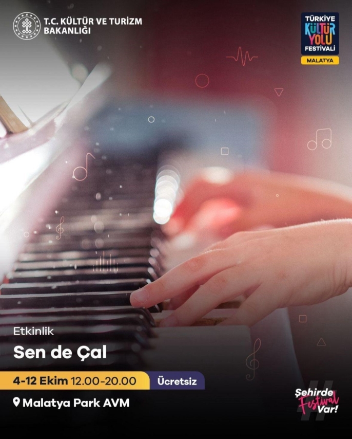 Kültür ve Turizm Bakanlığı'nın bu yıl ilk kez Malatya ev sahipliğinde düzenleyeceği Türkiye Kültür Yolu Festivali, 4-12 Ekim 2025 tarihleri arasında Malatya'nın 42 farklı noktasında binlerce sanatseveri ağırlayacak. Festivalin önemli duraklarından biri olan MalatyaPark AVM, bu renkli etkinliklere ev sahipliği yapacak.