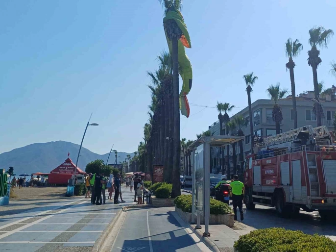 Marmaris'te deniz paraşütü faciası: Palmiye ağacına takılan iki kişi kurtarıldı