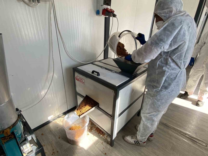 Palancıoğlu, "Mama üretim ekibimiz düzenli olarak her gün 25 adet yemekhaneden atıkları topluyor. Toplanan yemek atıkları tesisimizde önce içerisindeki ekmek, kemik ya da büyük parçalar parçalayıcıdan geçirildikten sonra mama üretim makinemize atılarak belli bir işlemden geçiriliyor. Ortalama 18 saatte üretilen mamalar, mama formunu alması için pelet makinasından geçiriliyor. Peletlenen mamalar daha sonrasında kurutularak hazır hale getiriliyor" dedi. Bu proje ile doğanın korunmasına da katkı sağlandığını ve aylık yaklaşık 1 milyon TL tasarruf edildiğini vurguladı.