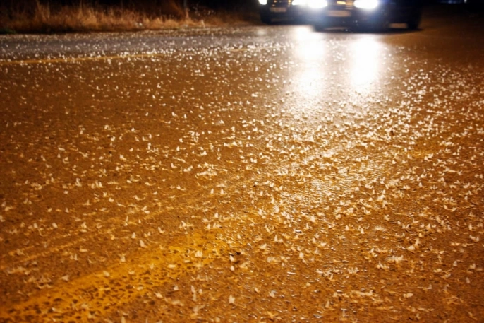 Gelişimlerini suda tamamlayan birgün sinekleri, döngülerinin son ve en kritik evresi olan çiftleşme ritüelini gerçekleştirdi. Aydınlatma direklerinin çevresinde toplanan binlerce sineğin ‘ölüm dansı’, her yıl tekrarlanan ve birgün sineklerinin adeta kar yağışını anımsatan ‘ölüm uçuşu’ görsel bir şölen oluşturdu.