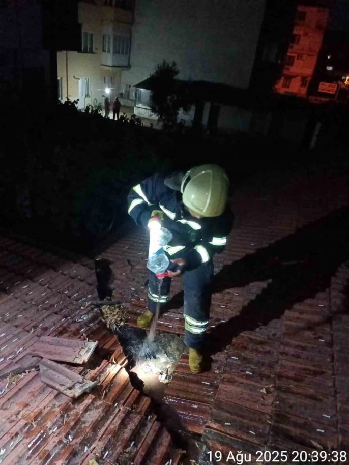 Muğla'nın Menteşe ilçesinde Orhaniye Mahallesi Sağlık Sokak'ta bulunan bir evin çatısında yangın çıktı. Yangın, çatıda biriken yaprakların üzerine atılan bir sigara izmaritinin neden olduğu belirtildi. Yoğun dumanı fark eden çevredeki vatandaşlar durumu hemen yetkililere bildirdi.