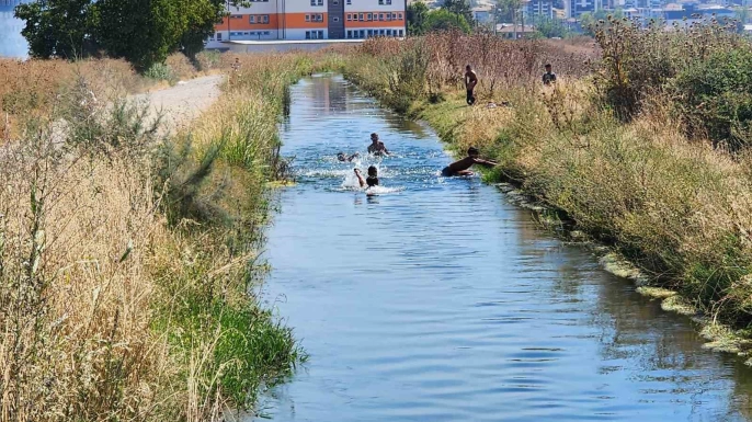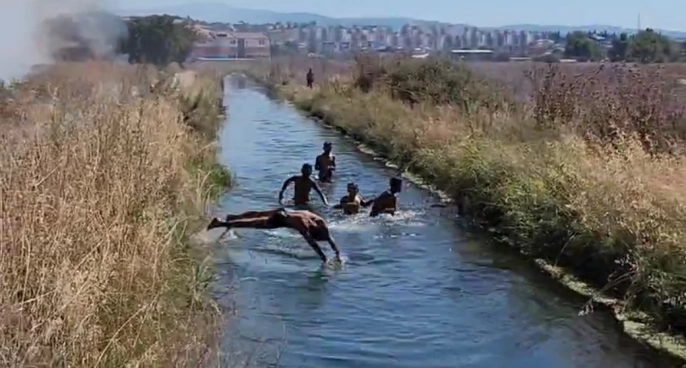 Yangınla mücadele sürerken, birkaç çocuğun su kanalına atlaması dikkat çekti. Sıcaklığın 36 dereceyi bulduğu bir günde, alevlerin hemen yanında bulunan sulama kanalına giren 6-7 çocuk, tehlikeyi gözardı ederek suya atladı. Çocuklar, beton köprüden suya atlayarak yüzdüler.