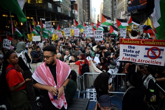 Filistin Devleti'nin tanınması yönündeki uluslararası rüzgarın estiği Birleşmiş Milletler Genel Kurulu'nda kürsüye çıkan Netanyahu, konuşmasına başlarken birçok delegasyonun salonu terk ettiğini gözlemledi. Netanyahu, İsrail'in Husiler'e, Hamas'a ve Hizbullah'a büyük zararlar verdiğini belirterek, "İsrail, İran'ın İsrail'e yönelik varoluşsal tehdidini ortadan kaldırdı. Açık zihinli ve dikkatli olmalı, İran'ın nükleer kapasitesini yeniden inşa etmesine izin vermemeliyiz. İran'ın zenginleştirilmiş uranyum stokları ortadan kaldırılmalıdır" ifadelerini kullandı.