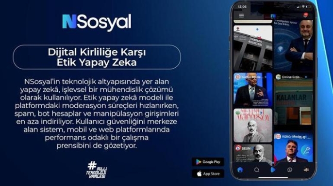 Platformun teknolojik altyapısındaki etik yapay zekâ modeli, moderasyon süreçlerini hızlandırarak spam, bot hesaplar ve manipülasyon girişimlerini minimize ediyor. NSosyal, yerli teknoloji üretme kapasitesiyle kısa sürede 1,7 milyon kullanıcıya ulaşmayı başardı. Ayrıca, 'ahlaklı yapay zekâ' olarak bilinen T3AI botu, kullanıcılara hizmet vermeye devam etmektedir.