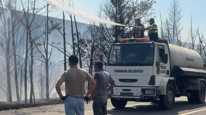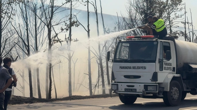 Sakarya'nın Pamukova ilçesinde geri dönüşüm tesisinin yakınındaki çam ağaçlarının bulunduğu alanda çıkan yangın, itfaiye ve Orman Bölge Müdürlüğü ekiplerinin müdahalesiyle kontrol altına alındı. Yangın, Yenice Mahallesi Fatih Caddesi'nde öğle saatlerinde başladı ve rüzgarın etkisiyle hızla yayıldı.