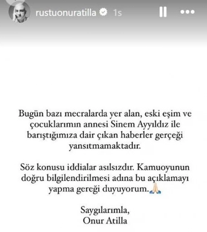 Bir süre sonra, Atilla'nın eski eşi Sinem Ayyıldız ile yeniden bir araya geldiği iddiaları ortaya atıldı. Bu haberlerin hızla yayılması üzerine Atilla, sosyal medya hesabından bir açıklama yaparak barışma iddiasını yalanladı. Paylaşımında, eski eşiyle barıştıklarına dair haberlerin gerçeği yansıtmadığını ve söz konusu iddiaların asılsız olduğunu belirtti.