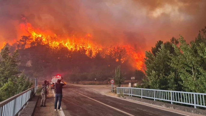 Karabük'ün Safranbolu ilçesine bağlı Çavuşlar köyünde çıkan orman yangını, kontrol altına alınamadı. Yangının tehdit ettiği Çavuşlar Merkez ve Köprübaşı mahalleleri, tedbir amaçlı olarak tahliye edildi. Alevler, kara yolunu aşarak karşı yakaya sıçradı.