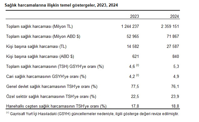 Türkiye İstatistik Kurumu (TÜİK) tarafından açıklanan son veriler, ülkemizdeki sağlık harcamalarında dikkat çekici bir artış olduğunu ortaya koydu. 2024 yılında toplam sağlık harcamaları bir önceki yıla göre %89,6'lık büyük bir sıçramayla 2 trilyon 359 milyar 151 milyon liraya ulaştı. Bu durum, kişi başına düşen sağlık harcamasının da alarm verici bir şekilde yükselmesine neden oldu.