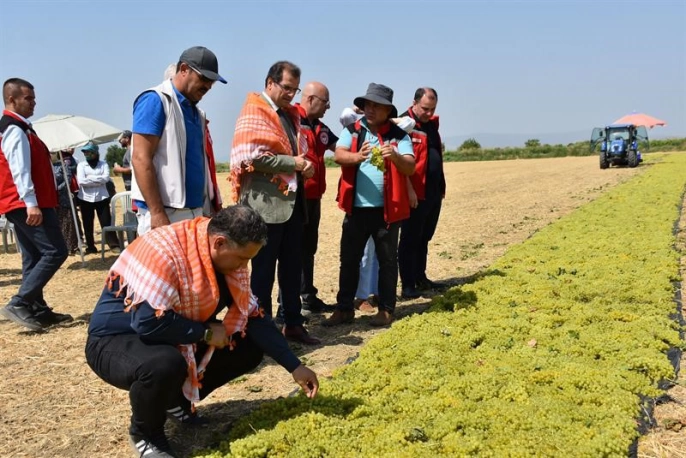 Manisa'nın Salihli ilçesinde sultani üzüm hasadı başladı. Kaymakam Ali Güldoğan, Kemerdamları Mahallesi'nde düzenlenen hasada katılarak üzüm kesti.