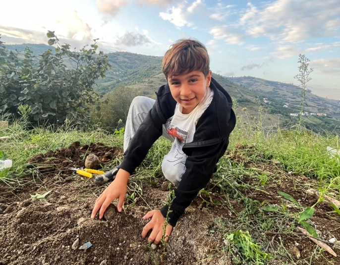 Samsun'da ilkokul öğrencileri yeşil vatan için fidan dikti